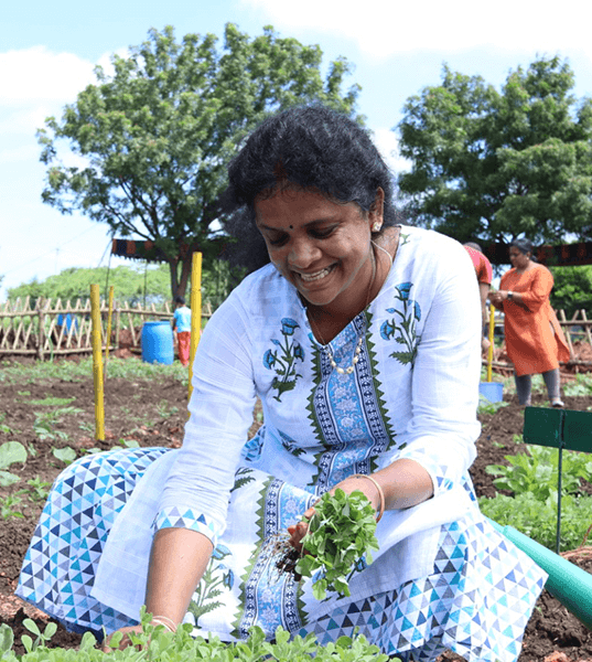 Srilakshmi is one of our Farm Coaches. A passionate gardener-turned-farmer, Srilakshmi (along with Prabha) are practicing natural farming on 22 acres on the outskirts of Hyderabad. With a keen eye for farm management as well as crop management, she is an self-taught expert in training both children and adults on natural farming techniques. A natural nurturer, she brings smiles and guidance to all who want to experience the joy of farming and gardening